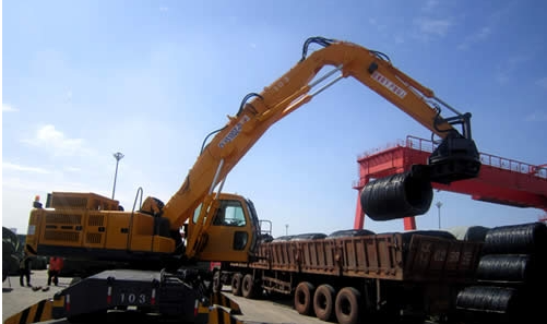 The improved double power grab of Bada Heavy Industry Co., Ltd. is equipped with special loading  and unloading slings for coils and steel coils  which are used for the stacking operation of loading and unloading trucks, ships and freight yards with large volumes of coils and steel coils .